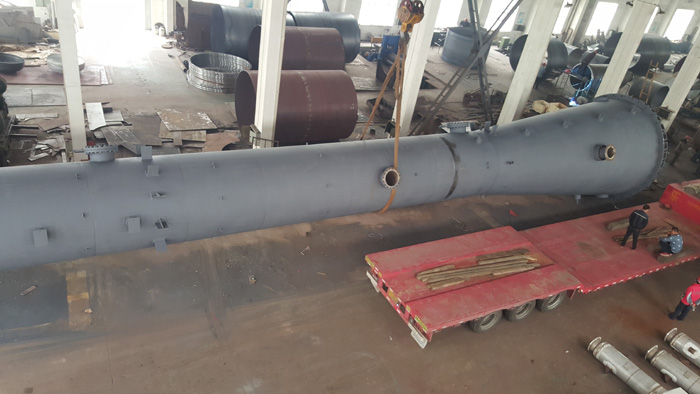 我公司最新制作的脫異丁烷塔,長(zhǎng)達(dá)60.3米,容積196立方,凈重63500千克,刷新了我公司實(shí)際項(xiàng)目制作最長(zhǎng)塔器記錄,在設(shè)備、廠房大門均完好無(wú)損的情況下,成功竣工并裝運(yùn)出車間。